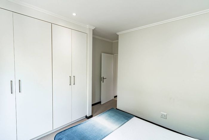Low-maintenance ground-floor living in the heart of Midrand, steps from shops and major routes, with a private patio and small garden. Open-plan kitchen, two bedrooms, one bathroom, two covered parking.