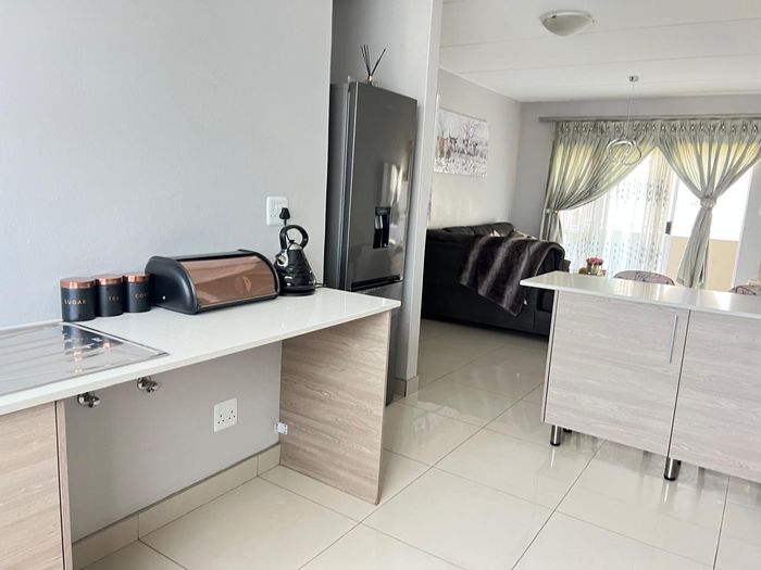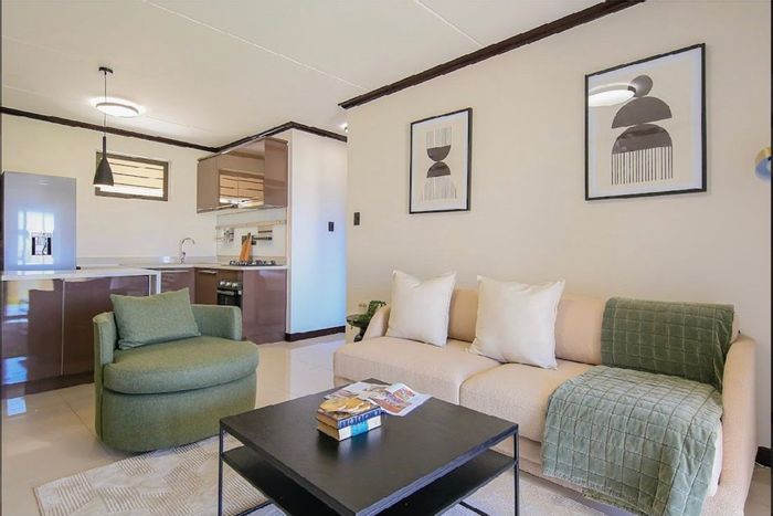 Enjoy effortless modern living in Blue Hills, Midrand — open-plan duplex with private garden and patio, quartz kitchen, fibre-ready; two bedrooms, family bathroom and two parking spaces.