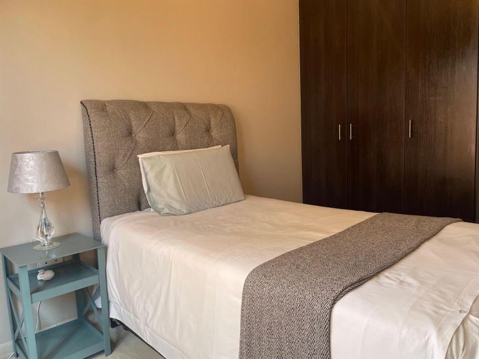 Enjoy effortless Midrand living in Katara Estate, Noordwyk — fully furnished apartment with balcony and open-plan kitchenette, pool and clubhouse access, two bedrooms, two bathrooms, two covered parking.