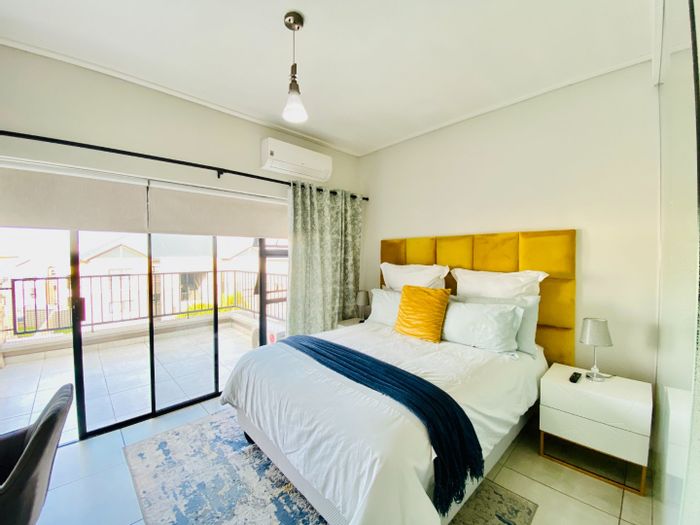 Turnkey executive living in Polofields, Waterfall — minutes to Mall of Africa and highways; first-floor 3-bedroom, 2-bath apartment with inverter backup, no load shedding, and double covered parking.