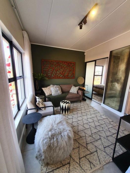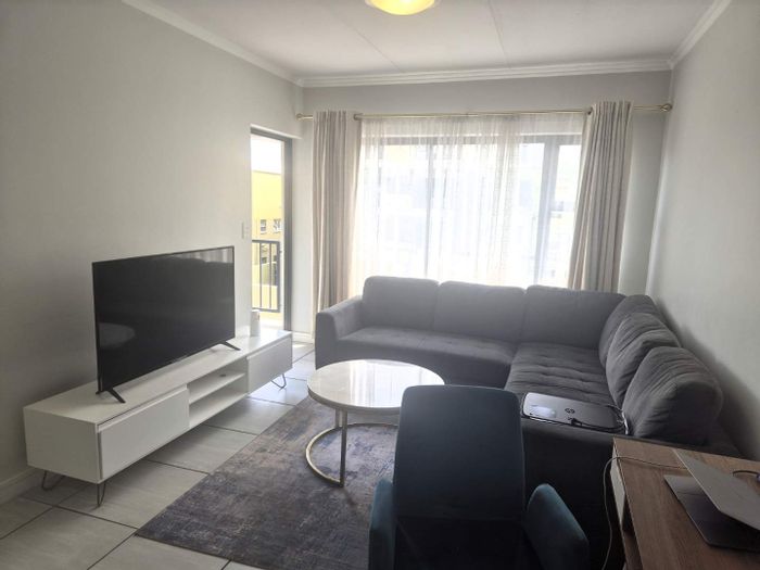 Resort-style living in secure Kikuyu Estate, steps from Mall of Africa and Woodmead; furnished 1-bedroom with balcony, en-suite and covered parking, plus lifestyle centre gym and spa.