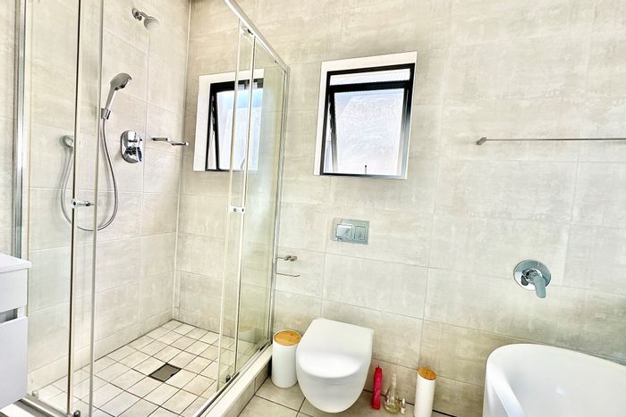 Entertain effortlessly in this top-floor penthouse near Mall of Africa with sweeping views, upstairs terrace boasting a splash pool and built-in braai. Two en-suite bedrooms, two parking bays.