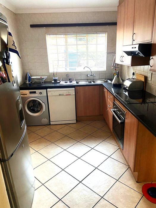 Estate lifestyle near Woodlands and Parkview shopping and top schools, with undercover patio and built-in braai overlooking private garden. Open-plan kitchen, two beds, two baths, double garage.