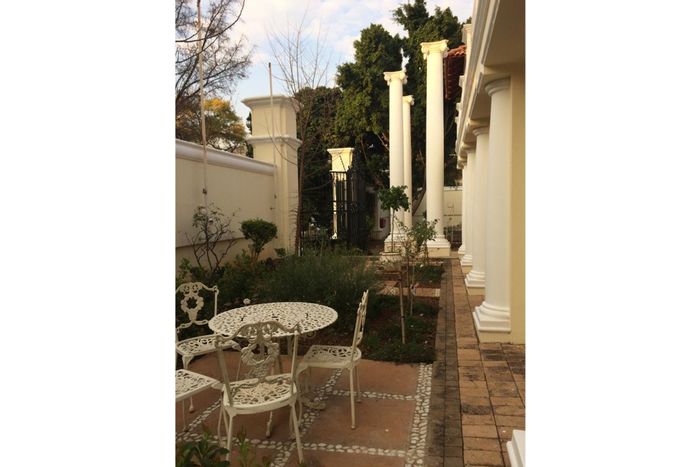 Boutique studio in leafy Waterkloof, steps from The Village's restaurants and boutiques, with on-request spa treatments and chef-prepared meals. One bedroom, one bathroom, covered parking.