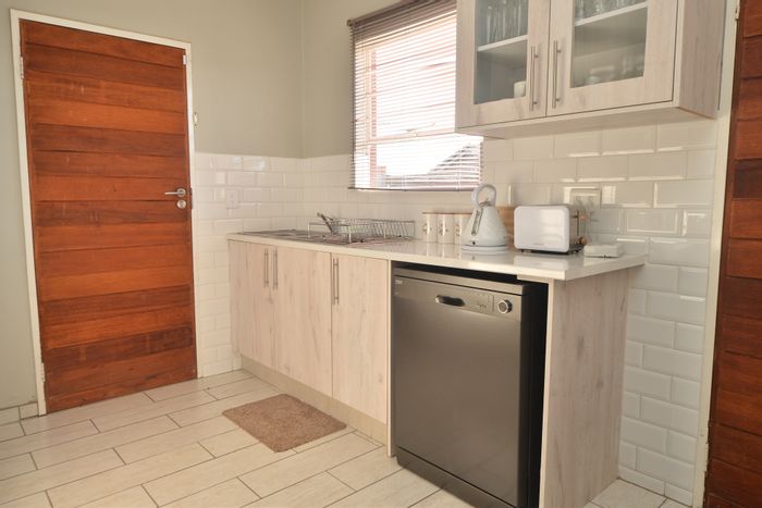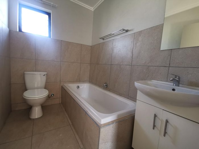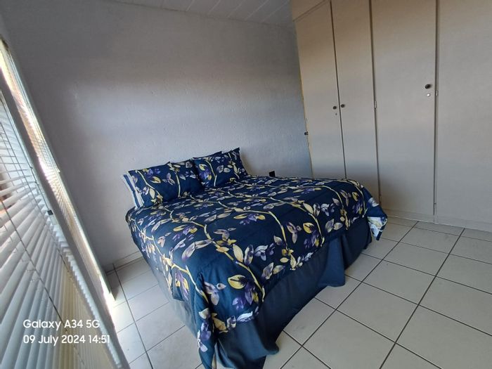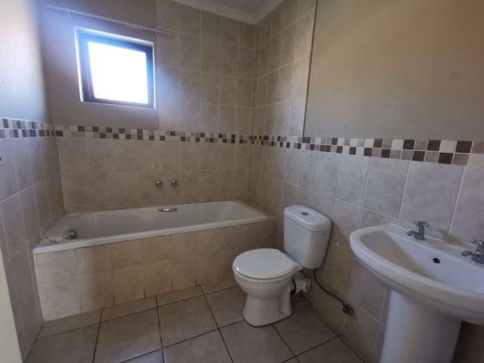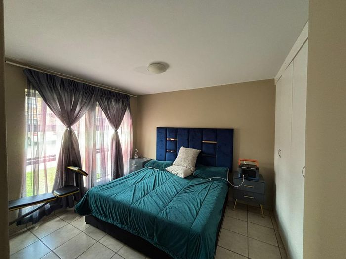 Secure, family-friendly living in Abia Complex with peaceful dam and play area; ground-floor lounge flows to a private garden — two bedrooms, one bath and two covered carports.