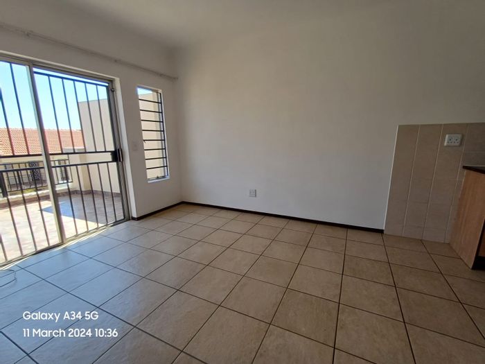 Relax with easy, low-maintenance living in the heart of Honeydew — secure first-floor apartment with open-plan lounge/kitchen, private balcony, one bedroom, one bath, and covered parking.