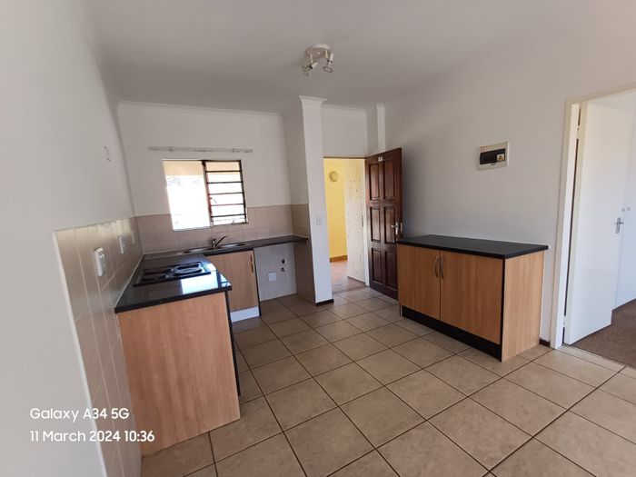 Relaxed family living in a secure complex near shopping, schools and major routes, featuring a balcony with outside braai and an open-plan lounge; two bedrooms, one bathroom and covered parking.