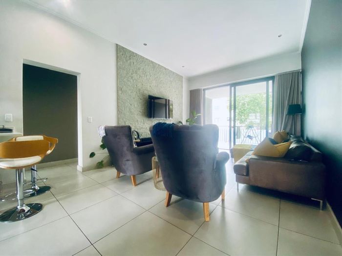 Refined modern living in sought-after Broadacres, minutes from Fourways amenities and Lanseria — stylish open-plan kitchen flowing to a private tree-lined garden, two bedrooms, one bathroom and two covered parking.