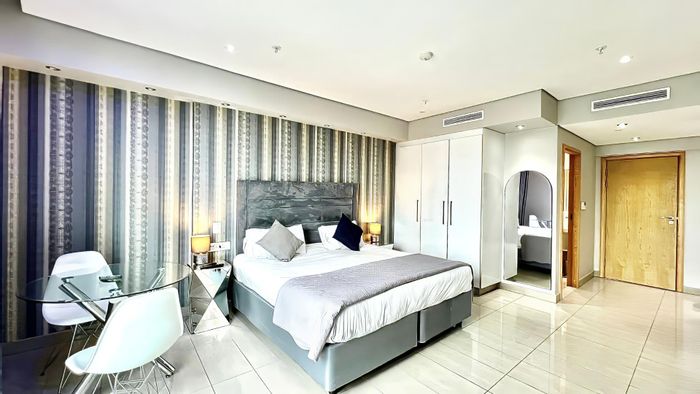 Ideal for busy executives, enjoy direct access to Capital Hotel & Pearls Mall dining, gym and Umhlanga promenade from this furnished self-catering suite with kitchenette, private bath and covered parking.