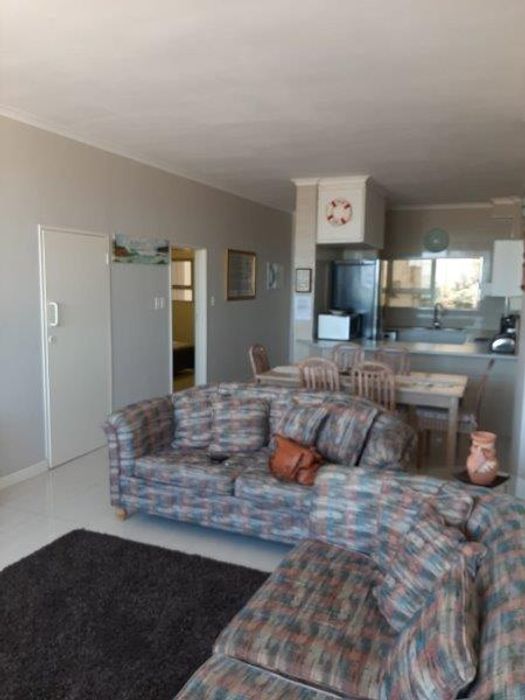 Seaside convenience on Beach Road, Strand — relaxed open-plan living with communal pool and braai areas. Fully furnished first-floor apartment with two bedrooms, two bathrooms and secure undercover parking.