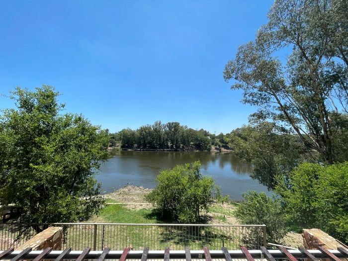 Riverside retreat on the Vaal River with 80m frontage, off-grid solar power and lush rose and fruit gardens. Four bedrooms, three bathrooms, double garage.
