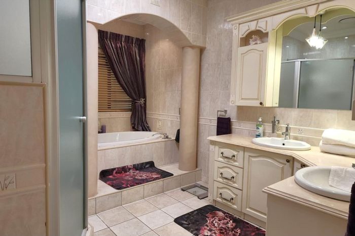 Perfect for large families or guest-house ventures in a serene leafy neighbourhood; thatched entertainment pavilion with built-in braai and bar overlooks landscaped gardens. Nine bedrooms, nine en-suite bathrooms.