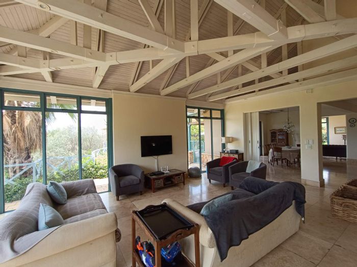 Equestrian lifestyle in Sunvalley: Cape Dutch thatch homestead with ship’s captain door, five-bedroom main house, 16-stable barn, sand jumping and dressage arenas.