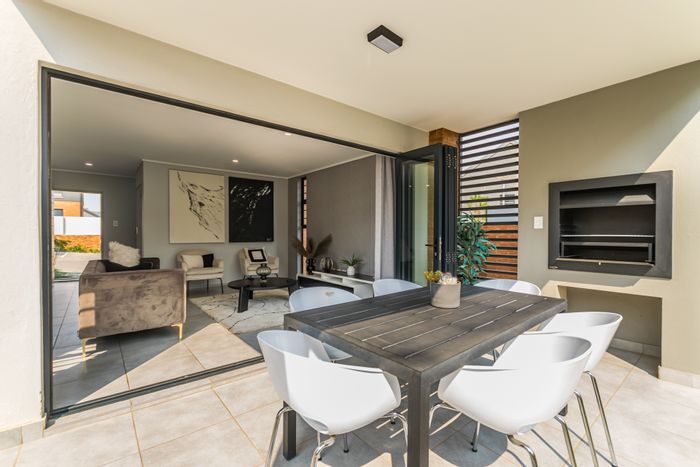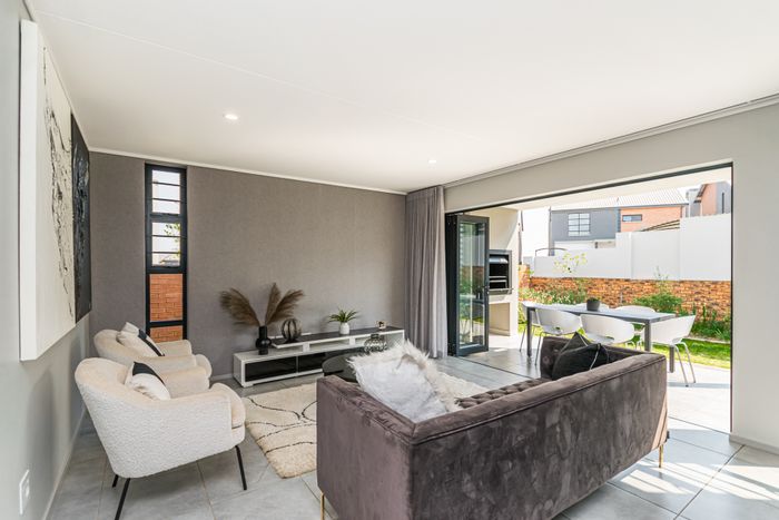 Family-friendly living in Manhattan Lifestyle Estate, Amberfield City—close to schools and Gautrain. Entertain on a large covered patio with built-in braai and private garden; three bedrooms, three bathrooms, single garage.