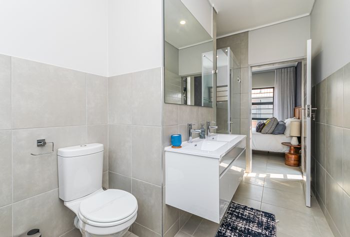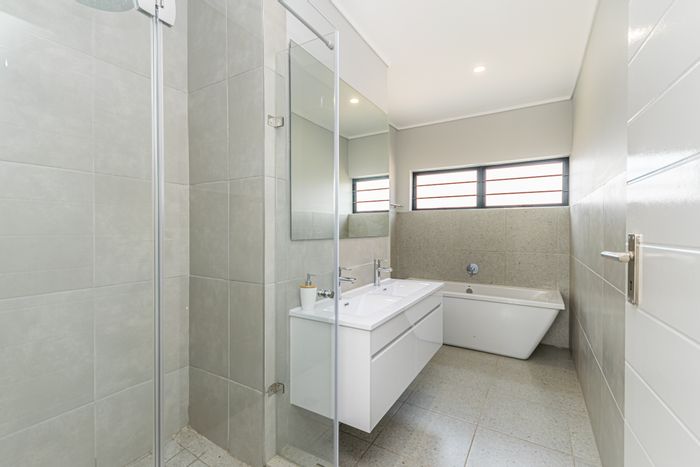 Relax in Amberfield, Centurion with suburban convenience and highway access; large garden with extended patio deck for entertaining, new 5kW solar system, two bedrooms, two en-suite bathrooms, double garage.