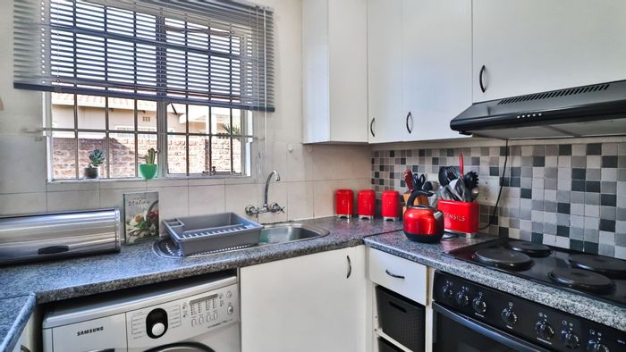 Effortless lock-up-and-go living near highways, malls and restaurants, with a private garden and modern open-plan granite kitchen. Pet-friendly complex with pool and braai; two bedrooms, one bath, two covered parking.