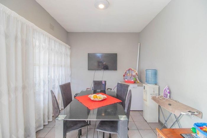 Relaxed family living in quiet Denlee, Germiston — stroll to Victoria Lake and shops. Sunroom, modern kitchen with new Defy stove, full solar and double-size garage.