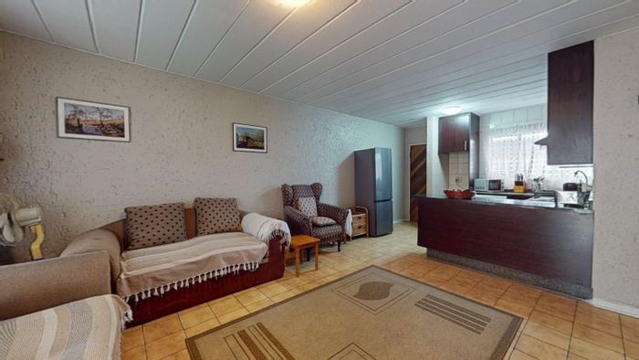 Embrace relaxed living in quiet, secure Lentehof, Elsburg — ideal for buyers or downsizers. Open-plan living flows to front and paved back courtyards; needs TLC. Three bedrooms, one bathroom, garage.