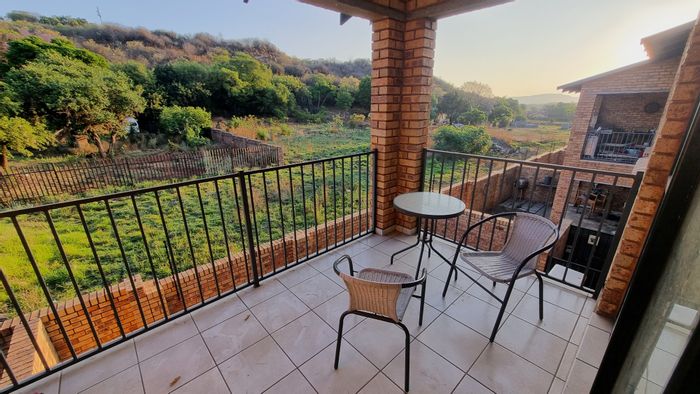 Hilltop Sunnyrock living with sweeping panoramic views from a large balcony and built-in braai; newly renovated kitchen, master en suite bath, two bedrooms, two bathrooms, double automated garage.