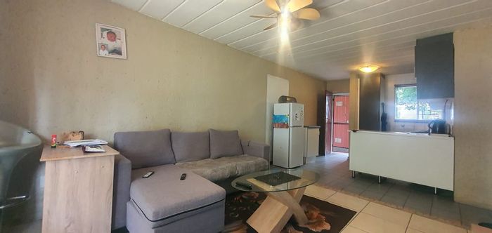Relaxed suburban living in Union, Germiston with quick freeway access and nearby schools; open-plan lounge flows to private garden and patio with built-in braai. Two bedrooms, one bathroom, undercover parking.