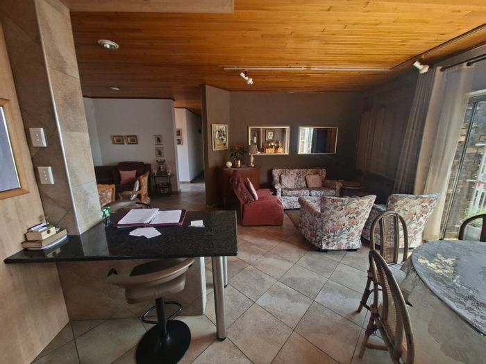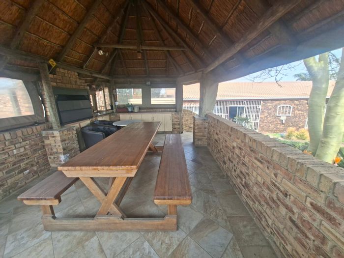 Entertainer's haven in the heart of Rant en Dal — free-standing townhouse in a secure complex with a thatched lapa and built-in braai, landscaped garden, granite kitchen; four beds, two baths.