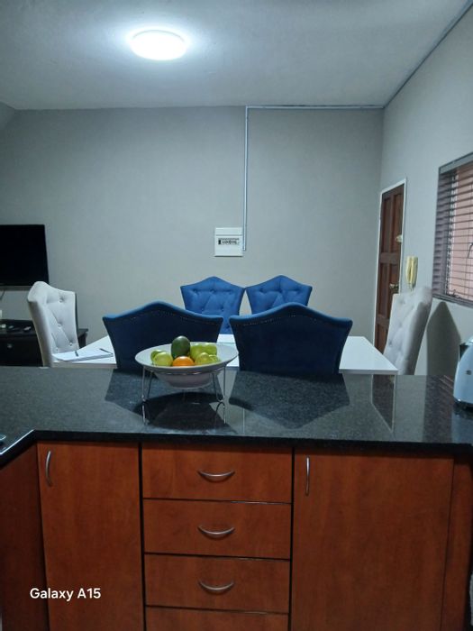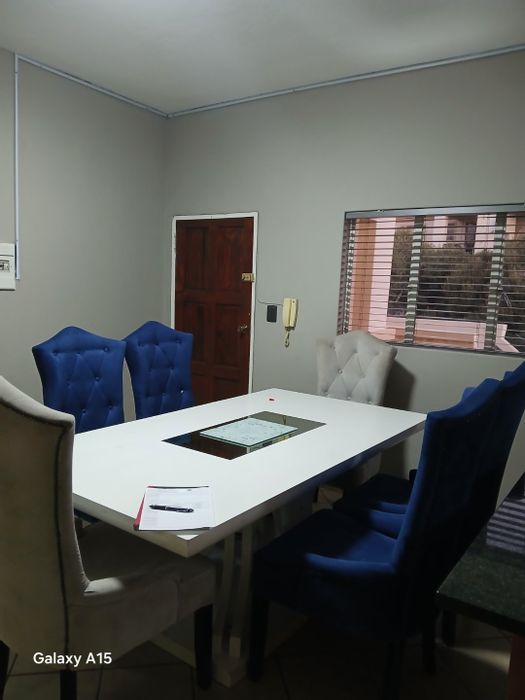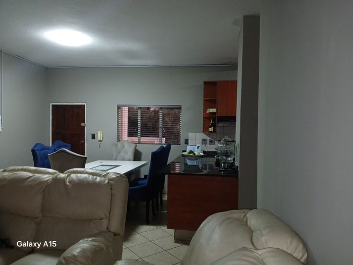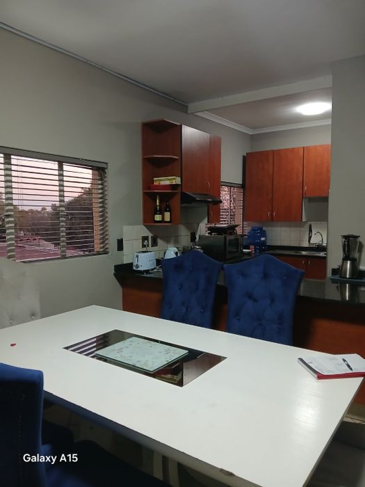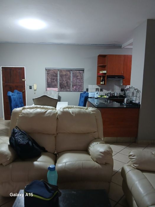 Entertainer's townhouse in a secure estate with a large open-plan kitchen and flexible living areas, ideal for family or home office. Three bedrooms, one bathroom, covered parking.