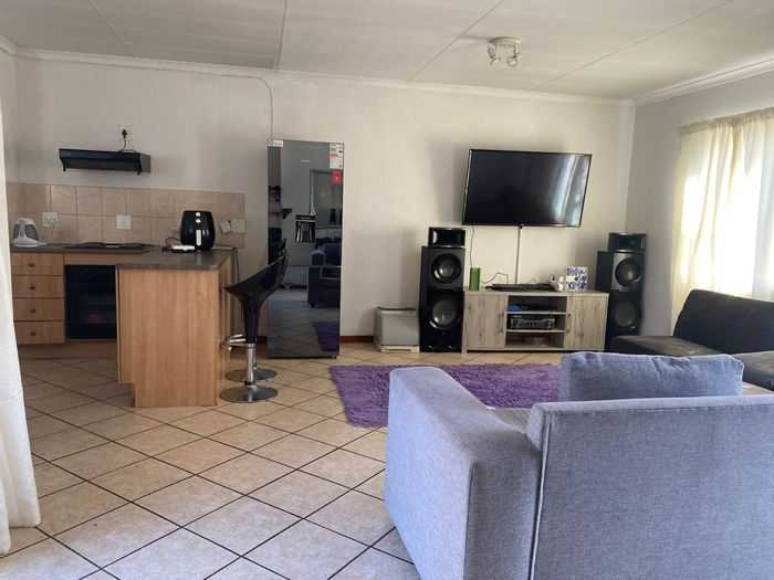 Relax in a sun-filled private garden at Keylargo, Vorna Valley’s sought-after complex, with open-plan lounge and kitchen, three bedrooms, pet-friendly, double undercover parking, near Mall of Africa.