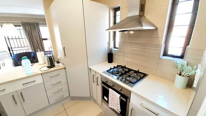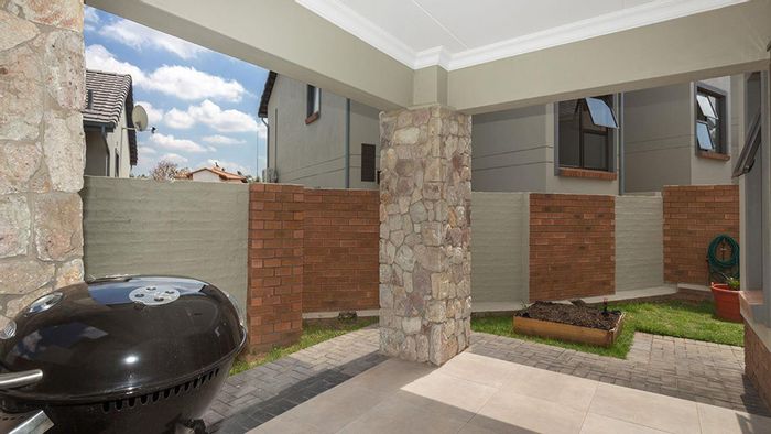 Entertainer's townhouse in Riverbend Estate, Kyalami Hills — secure, family-friendly location near top schools and shopping. Private landscaped garden and covered patio; modern kitchen, three bedrooms, 2.5 baths, double garage.