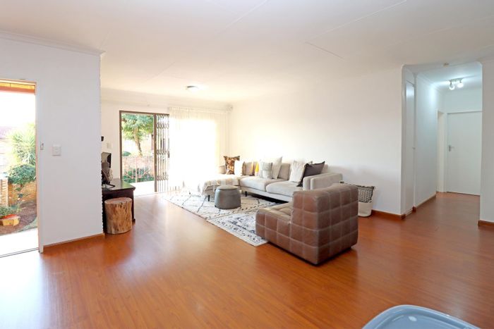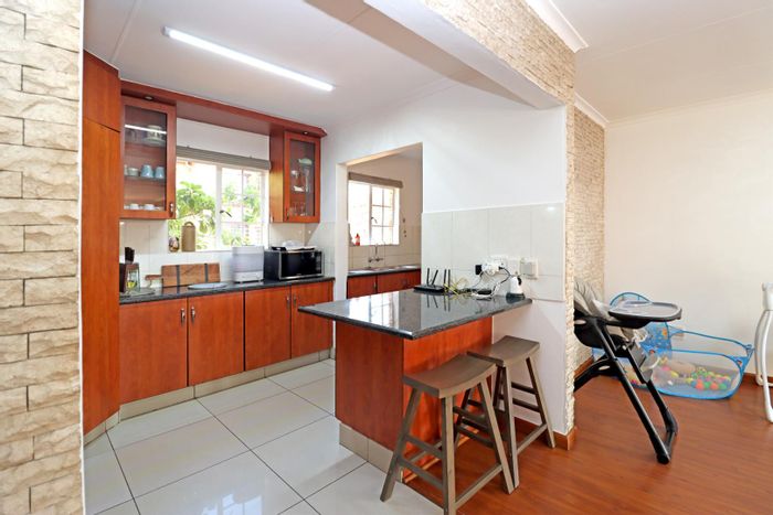 Family-focused, secure living in Kyalami Hills, moments from Kyalami Corner and Mall of Africa; open-plan townhouse with covered patio and private garden, three bedrooms, two baths, double garage.