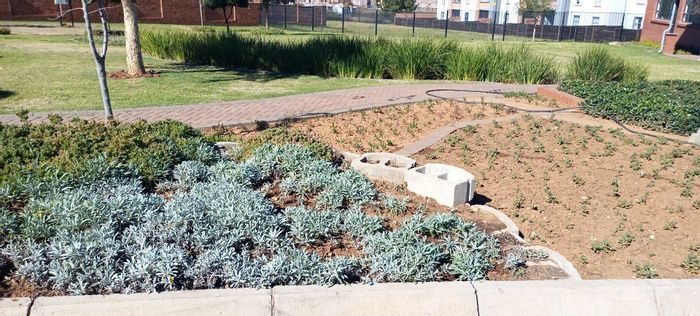 Relaxed, secure suburban living in Sagewood, Midrand with poolside entertainment and 24-hour security, sunny private garden and a shiny kitchen with new countertops — two bedrooms, one bathroom, lockup garage.