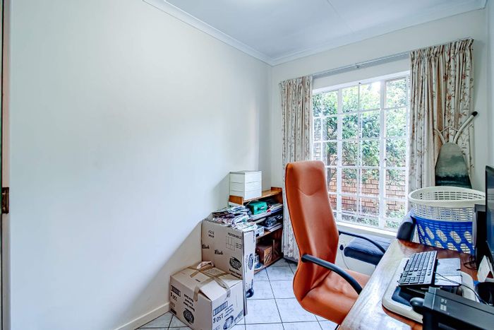 Relaxed lock-up-and-go living in Sandalwood Park, Die Wilgers — minutes from Lynwood and Equestria shops and highways; enclosed braai with jacuzzi and private garden. Three bedrooms, two bathrooms, double garage.
