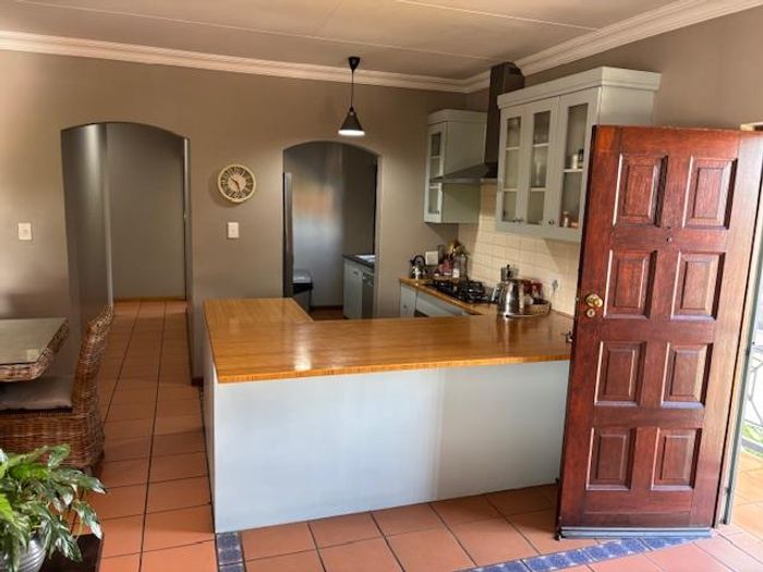 Family-focused townhouse near Kloof Hospital with generous indoor-outdoor flow, covered patio and built-in braai overlooking an exceptionally large private garden; three bedrooms, two bathrooms and secure garages.