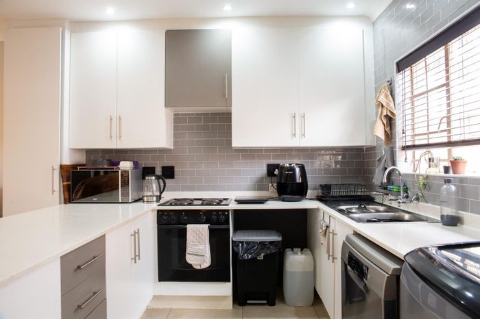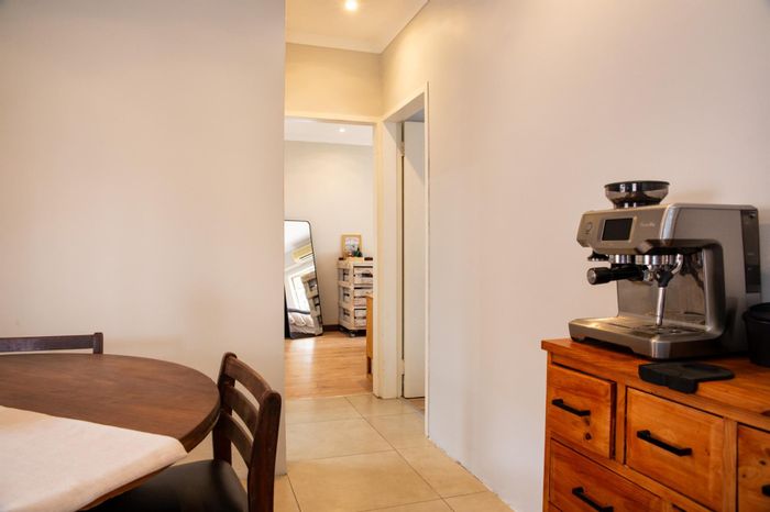 Peaceful Faerie Glen simplex with leafy streets, bright open-plan living and cherry-veneer kitchen. Enclosed patio with built-in braai and automatic switch-over generator. 2 beds, 1 bath, garage.
