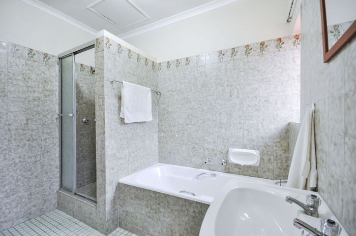 Enjoy relaxed suburban living in a quiet, family-friendly neighborhood with a spacious wrap-around garden, pool and braai patio — three bedrooms, one bath and double lock-up garage.