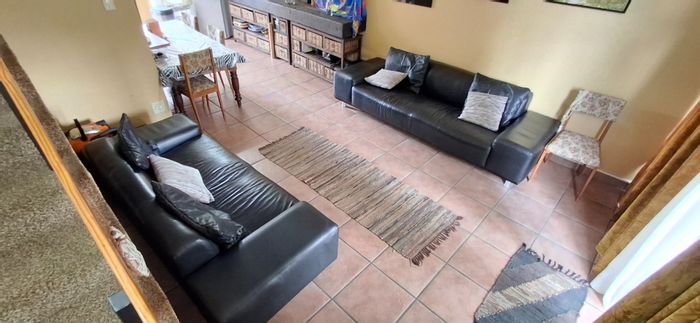 Family living in a secure complex near main roads, schools and shops — open-plan kitchen flows to private garden with built-in braai. Three bedrooms, two bathrooms and double garage.