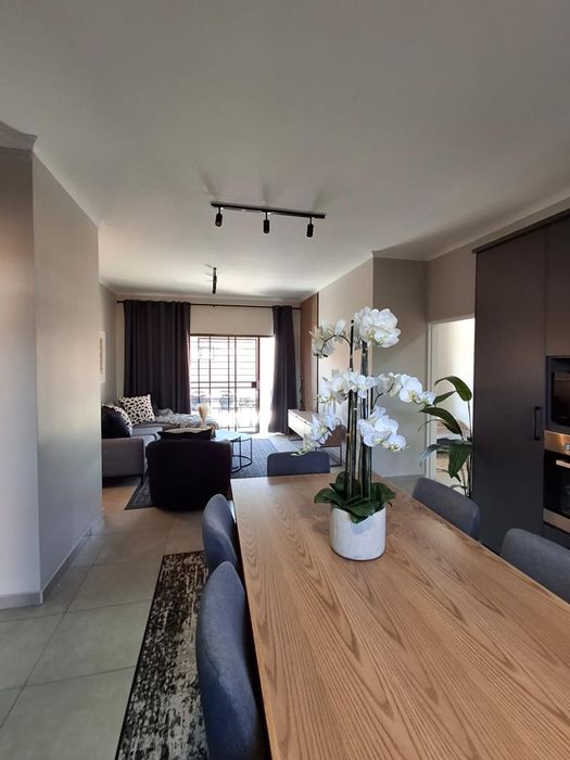 Relaxed suburban living in Rietvalleirand, Pretoria with quick access to schools, R21/N1 and shopping. Open-plan flow to private garden with built-in braai; three beds, two baths, double garage.