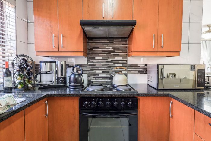 Low-maintenance living in Willow Park Manor’s El-Yon complex with 24-hour manned security, near The German School and shopping; patio with built-in braai, automated garage, two beds, two baths.