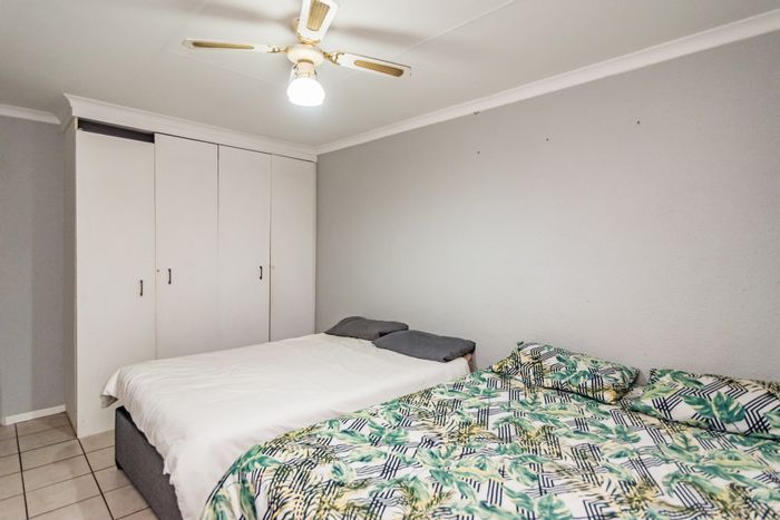 Effortless Helderkruin living near schools and shops; open-plan lounge and kitchen open to private patio with built-in braai and garden. Two bedrooms, one bath, double parking.