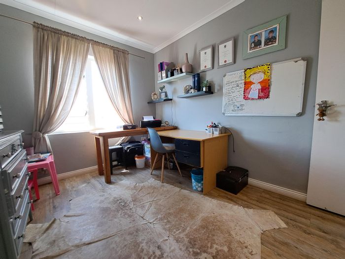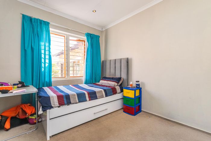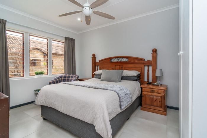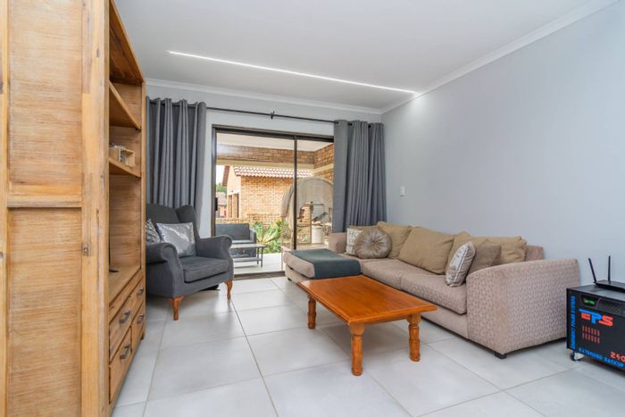 Enjoy relaxed suburban living in a quiet, secure complex near amenities — wrap-around landscaped garden and enclosed braai patio for entertaining. Three bedrooms, two bathrooms, double automated garage.