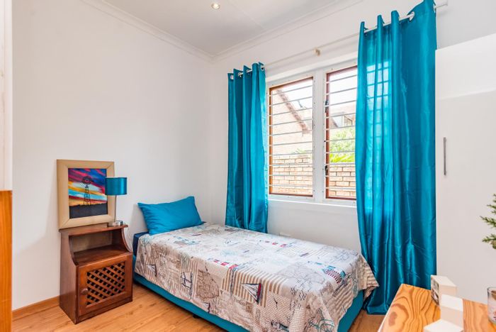 Renovated entertainer’s sanctuary in a complex close to schools and malls — covered patio with built-in braai, irrigated garden and master balcony with Sundowner views; 4 beds, 3 baths, double garage.