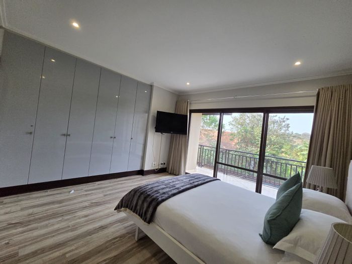 Resort-style living in Zimbali Estate with golf-course views, direct access to Valley of the Pools, covered veranda and pool deck — four en-suite bedrooms and double garage.
