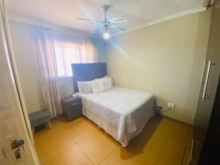 Secure relaxed family living in Montclair, Durban with gated-community lifestyle, open-plan entertaining and a poolside bar overlooking the communal swimming pool. Three bedrooms, two bathrooms and garage.