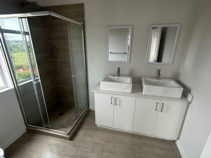 Enjoy secure, modern estate living with Midmar Dam and Berg views in Eagle Ridge Estate, Howick; open-plan lounge/dining with granite kitchen, bay windows, two bedrooms, two bathrooms, automated double garage.