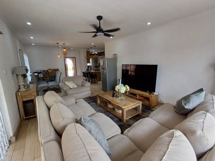 Pet-friendly, well-managed complex near Uvongo beaches — enjoy panoramic sea views, a private landscaped garden and covered patio for sundowners. Open-plan living; 3 beds, 2 baths.