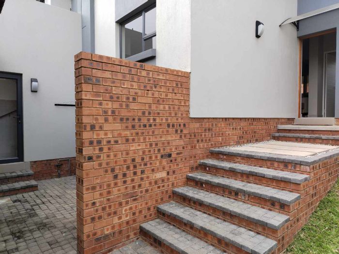 Tranquil Matumi Valley living in Nelspruit Ext 37 — contemporary townhouse with private garden and patio, renovated eat-in kitchen, communal pool, garage and two bedrooms with three bathrooms.