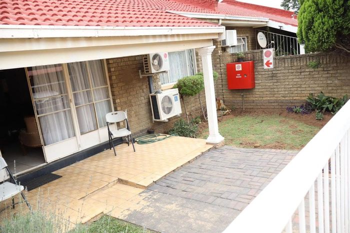 Secure Waterval East townhouse near shopping, top schools and main routes, with covered stoep overlooking a sparkling pool, air-conditioned lounge, 3 bedrooms, 2 bathrooms, ample parking.