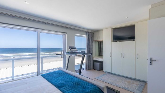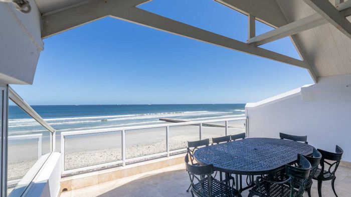 Oceanfront living with sunset and Table Mountain views, west-facing deck and private beach access; turnkey, fully furnished 3-bed, 3.5-bath maisonette with Smeg kitchen and double garage.