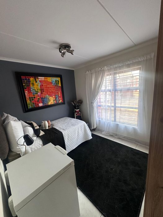 Lock-up-and-go living in a secure, landscaped estate near O.R. Tambo, with patio and built-in gas braai, communal pool, gym and free WiFi. Three bedrooms, two bathrooms, double carport.