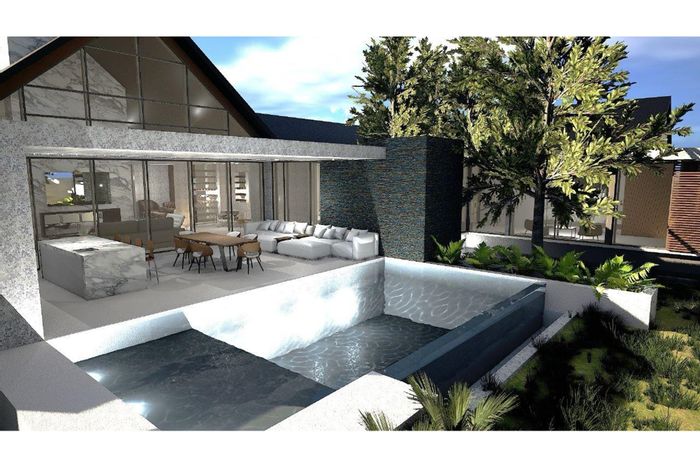 Create your bespoke luxury retreat in an exclusive, tranquil neighborhood — a half-built canvas on 1,390 m² with covered patio and built-in braai, four bedrooms, four bathrooms.