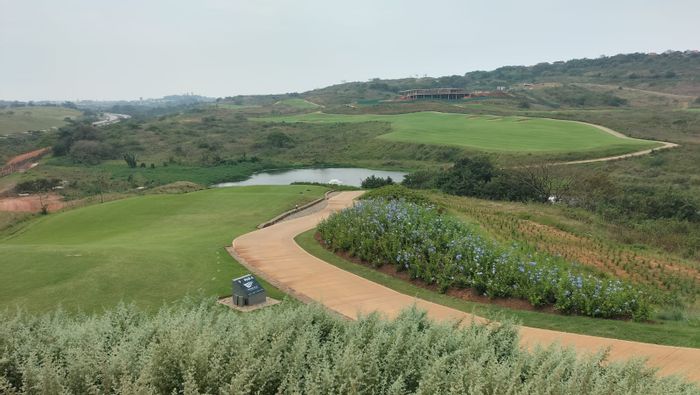 Perched atop the ridge in Zimbali Lakes, this SE-facing 1,249m² stand overlooks the 18th hole with valley and distant sea views — access to Ernie Els course and beach club.